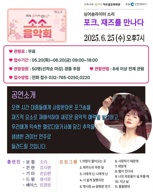 | 제목 | [공연접수안내]소소음악회 6.25 (수)19시 접수 안내 | ||||