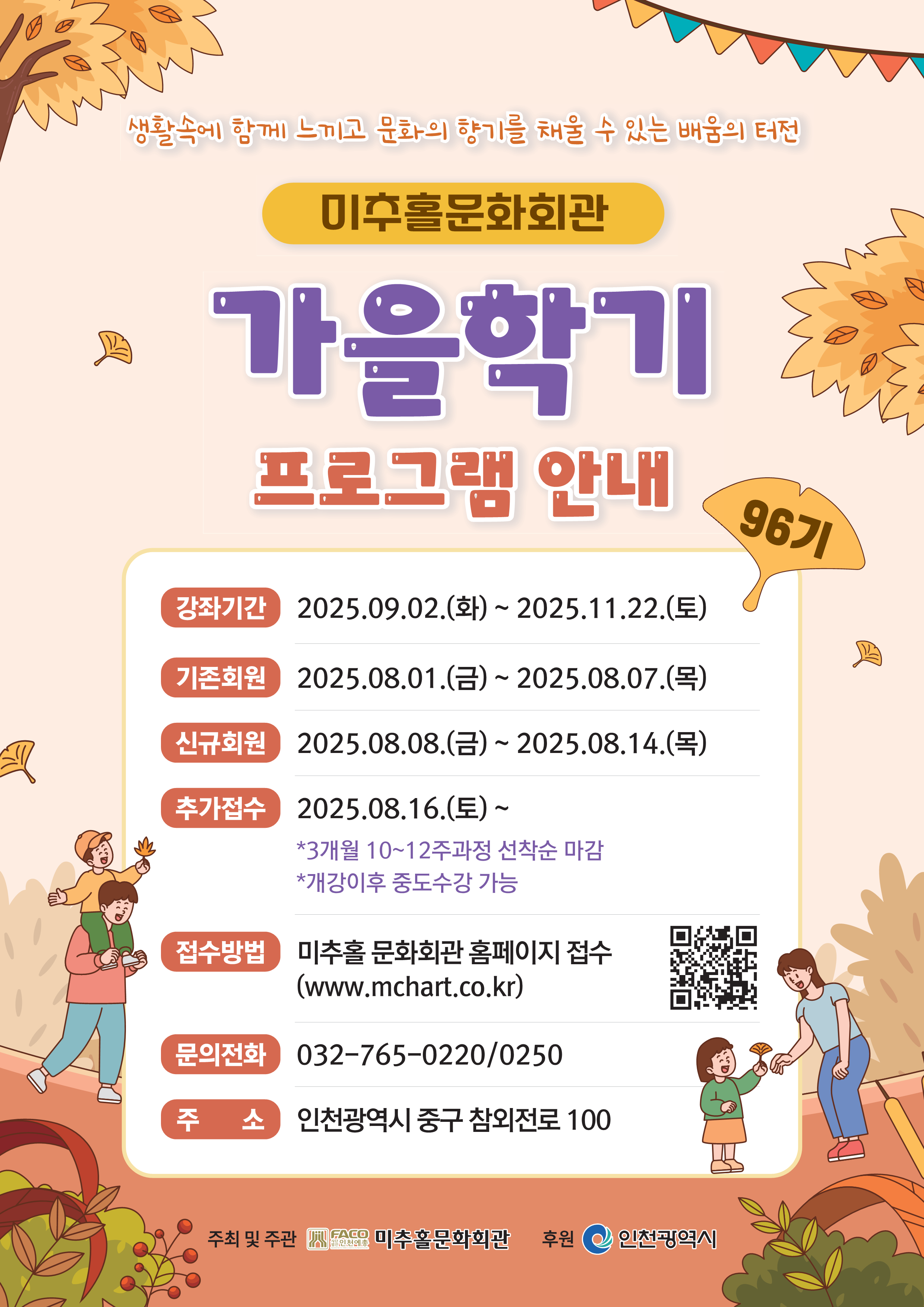 | 제목 | [안내]2025 미추홀회관 가을학기 접수안내 | ||||