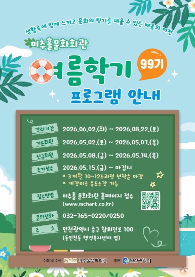 | 제목 | [안내] 2026 미추홀회관 여름학기 접수안내 | ||||